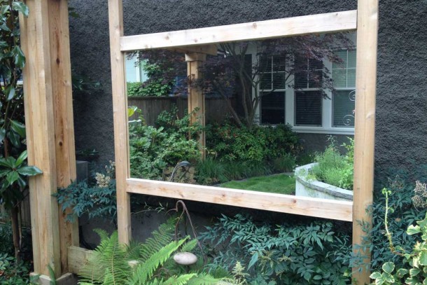 using mirrors in landscape design, using mirrors to make gardens seem bigger